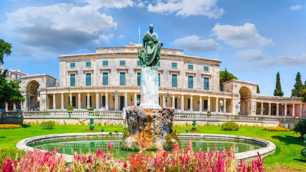 Palais Achilleion – Découvrez la grandeur de l'impératrice Sissi avec le confort d'une location de voiture à Corfou.